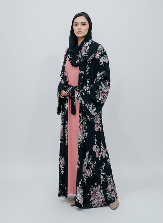 Omre chiffon 2 shaded Abaya- Black/ Grey