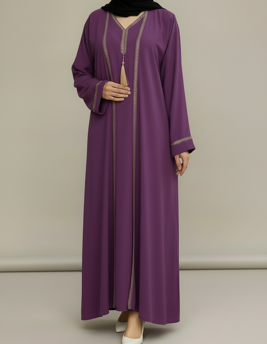 Embellished 2 piece Abaya- Purple