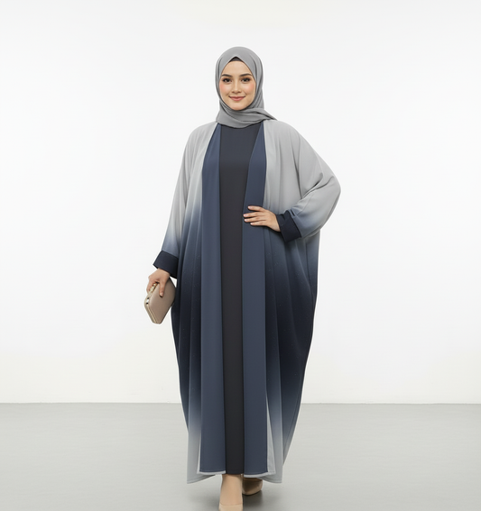 Omre Chiffon 2 shaded abaya- Blue/ Grey