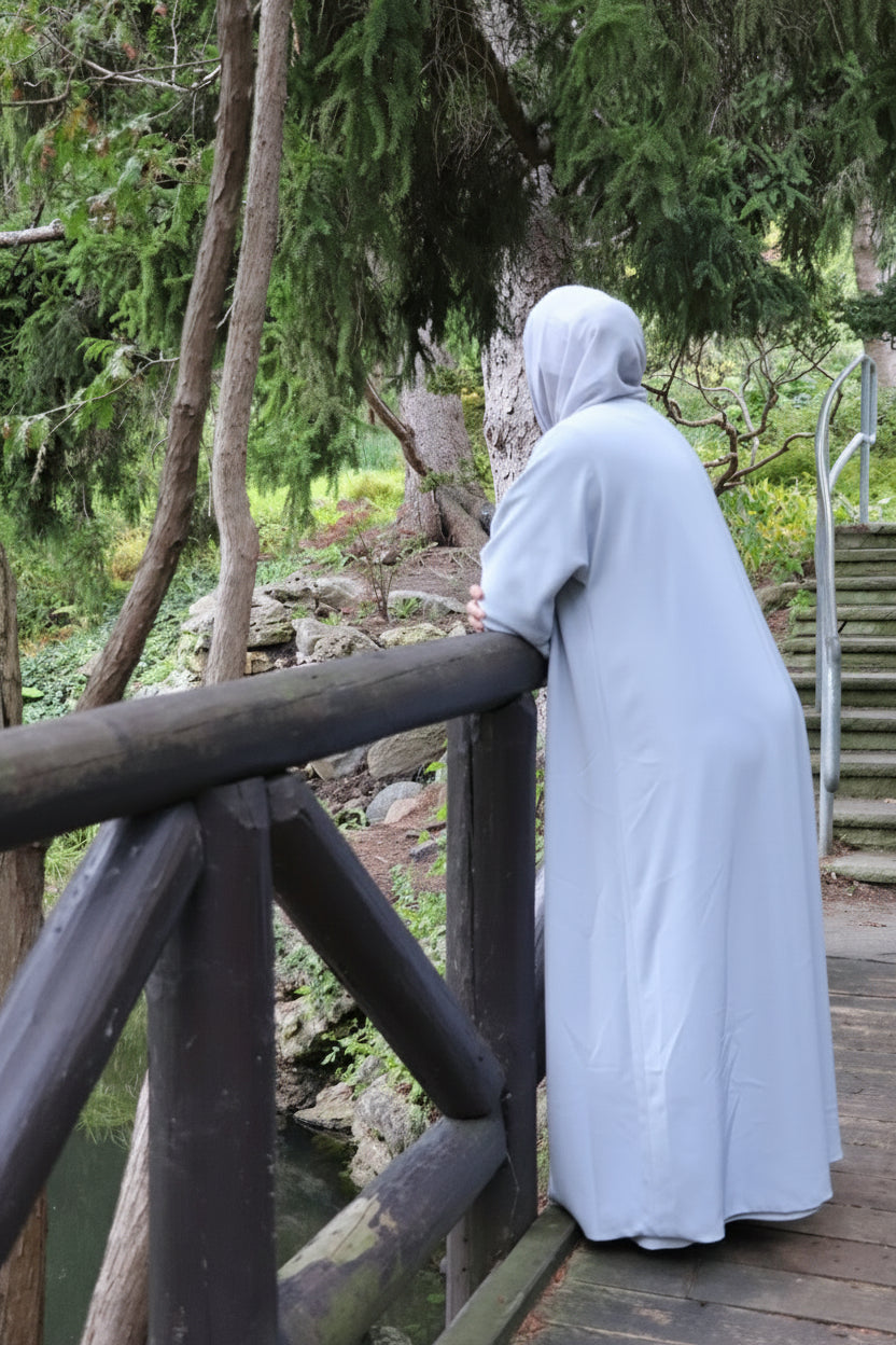 Experience the elegance of versatility with our Plum Purple & Dove Grey Reversible Abaya Set, tailored in the UAE from premium Korean nida fabric. Designed for women who appreciate effortless sophistication, this set offers two timeless looks in one—rich plum purple for a bold statement and soft dove grey for graceful minimalism.